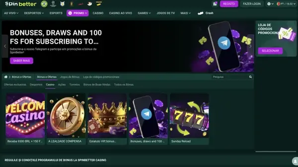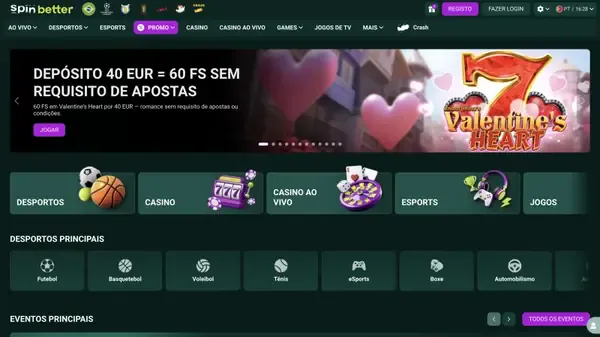 No Spinbetter Casino, pode alternar entre slots, mesas ao vivo e apostas desportivas usando uma Ăşnica conta e uma Ăşnica carteira. O nosso site está otimizado para navegadores de desktop e mobile, e tambĂ©m pode usar a aplicação Spinbetter em iOS e Android quando preferir uma opção instalada. Se estiver a entrar a partir do casino Spinbetter Portugal, encontrará mĂ©todos de pagamento compatĂveis com EUR e o portuguĂŞs entre mais de 51 idiomas suportados.