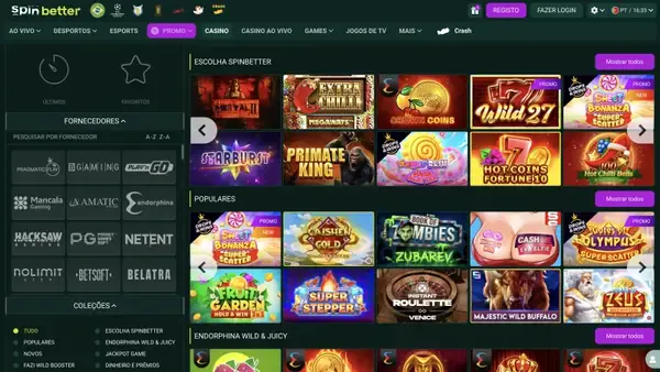 Para começar, crie uma conta, conclua o login Spinbetter e explore as categorias do lobby. Oferecemos mais de 7.700 jogos, incluindo slots, roleta, blackjack, bacará, vĂdeo pĂłquer, bingo, jackpots, casino ao vivo, jogos crash e mercados de apostas desportivas. Abaixo segue um resumo rápido do que pode esperar antes de explorar o site completo.